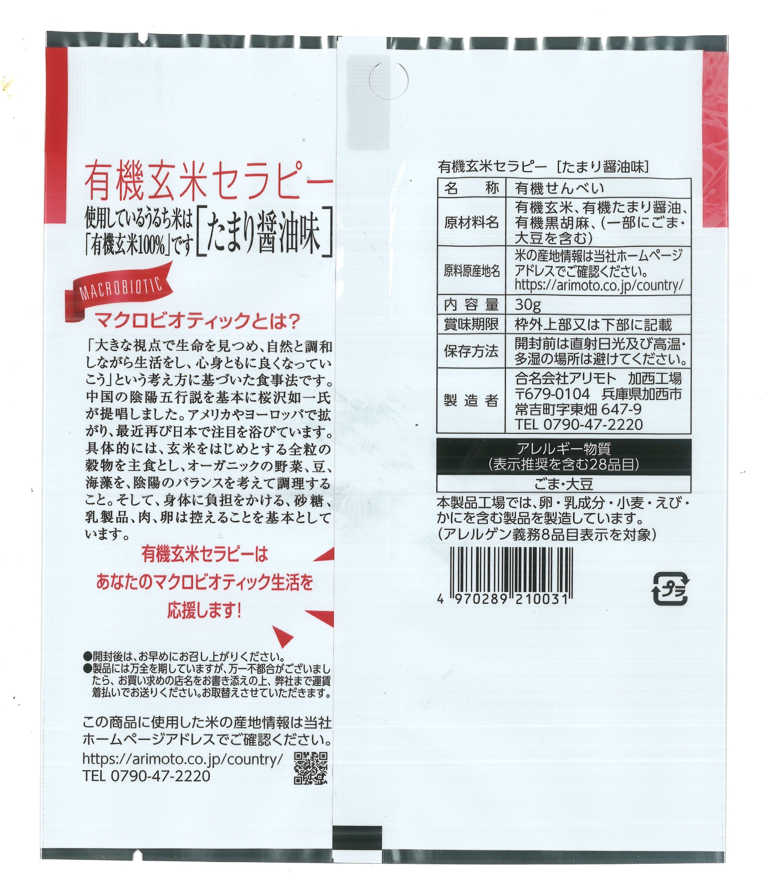 | 原材料 | 有機玄米、有機たまり醤油、有機黒ゴマ |