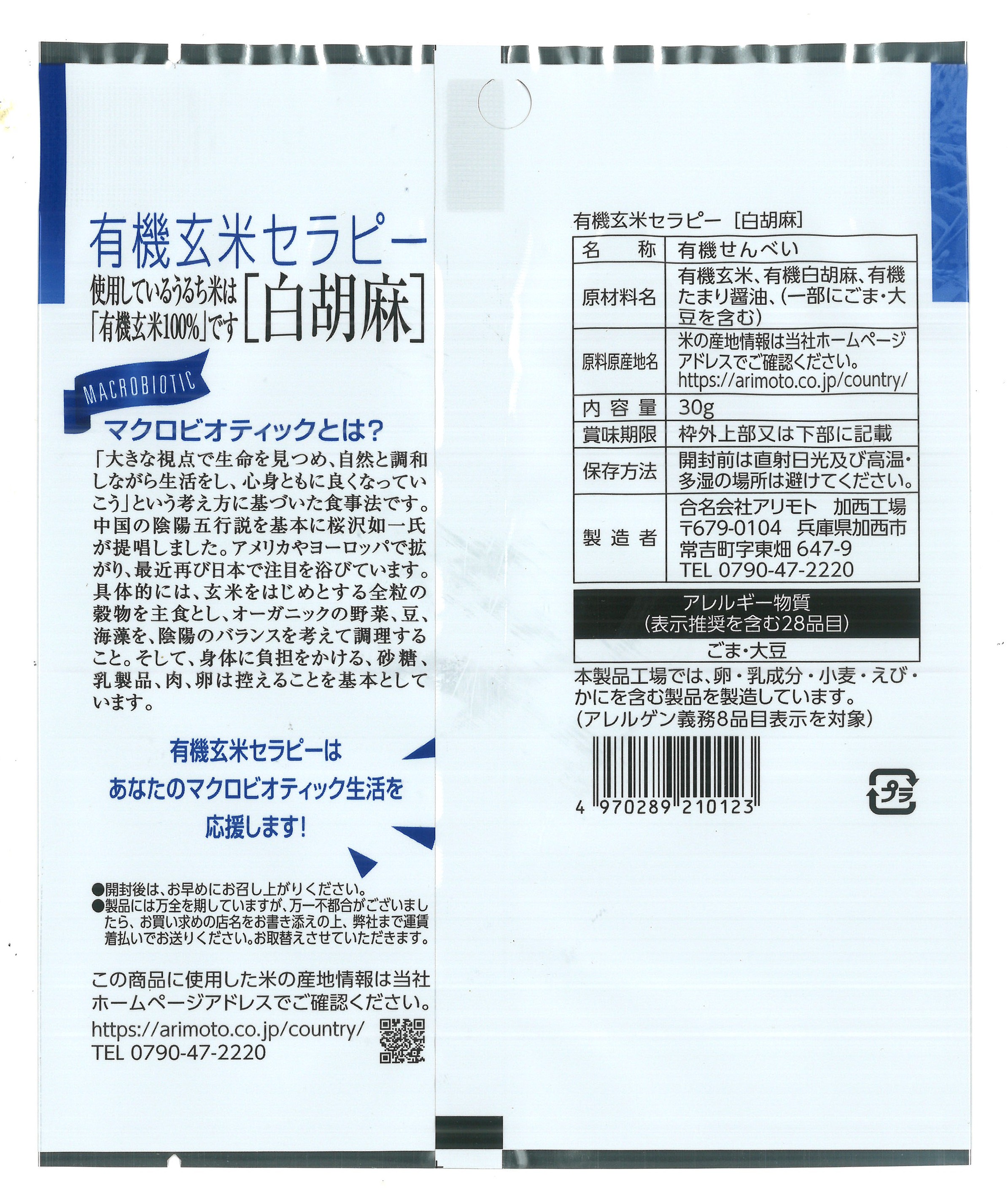 | 原材料 | 有機玄米(国産)、有機白胡麻、有機たまり醤油 |